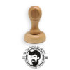 Sello personalizado de caucho manual con montura de madera barnizada.