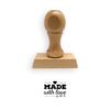 Sello de caucho manual con montura de madera barnizada.